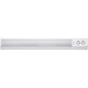 Időtlen megjelenésű fürdőszobai vagy pultmegvilágító lámpa. 1 darab A energiaosztályú, energiatakarékos fénycsővel csomagolt, amely18W-os, 1350 lumen fényerejű, 2700 Kelvines, azaz melegfehér fényű. 65 mm magas, 755 mm széles fém és műanyag lámpatest fehér színű műanyag búrával. Kapcsolóval, egyszerűen kezelhető, 2 darab beépített hálózati csatlakozó aljzattal. Az IP20-as védettségű lámpa G13-as foglalattal készült, 1 darab T8-as típusú, maximum 18W teljesítményű fényforrással használható.