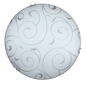 50 cm átmérőjű, modern, mégis időtlen megjelenésű mennyezeti lámpa 3 db E27-es foglalattal, fém és műanyag szerkezettel, mintás, fehér, íves kialakítású opálüveg lámpabúrával, króm színű rögzítőkörmökkel. A lámpatest maximum 3x 40W teljesítményű, halogén vagy LED fényforrásokkal is használható. Kialakításának köszönhetően a fényforrások cseréje, illetve a lámpatest tisztítása gyorsan és egyszerűen elvégezhető.