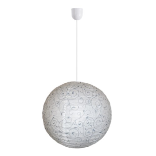 Ez a dekor lámpa modern, mégis keleti stílusú. 40 cm átmérőjű, papírból készített, fehér és szürke mintás ‘rizslámpa’ lámpaernyő, függeszték nélkül.