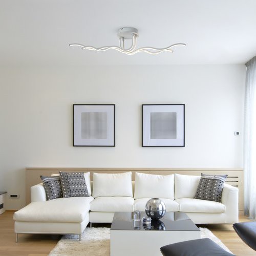 A nagyméretű Harriet mennyezeti lámpa modern nappalinkban vagy hálószobánkban nem csupán fényforrásként működhet, de fantasztikus dekorációként is szolgálhat: különleges formatervezése a lágyan hullámzó vizet juttatja eszünkbe, ami igazán kellemes és megnyugtató látvány egy fárasztó nap végén. A matt fehér színben készült lámpa természetes fehér fényt sugároz, tiszta, modern hatást keltve a szobában. A Harriet négy darab beépített, energiatakarékos LED fényforrással rendelkezik. Az A energiaosztályba tartozó fényforrások teljesítménye 30 W, fényerejük 2160 lumen, színhőmérsékletük 4000 K, élettartamuk pedig 20 000 óra. A fémből és műanyagból készült mennyezeti lámpa teljes hossza 950 mm, magassága 180 mm, mennyezettől való távolsága 200 mm. Erre a nem hétköznapi modellre 5 év garanciát vállalunk.