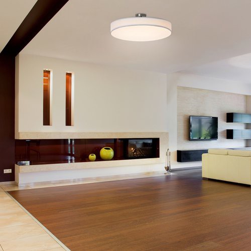 A nagyméretű, kerek Helios mennyezeti lámpa nevéhez méltóan úgy ragyogja be meleg fehér fényével a szobát, mint a Nap. A fémből készült szatinkróm és fehér színű lámpát körben fehér színű szövet borítja. A Helios letisztult formavilágával remek választás lehet modern nappalinkba vagy akár hálószobánkba. Beépített, energiatakarékos LED fényforrása 36 W teljesítménnyel bír, fényereje 2300 lumen, élettartama pedig lenyűgöző, mintegy 30 000 óra. Az A energiaosztályba tartozó fényforrás színhőmérséklete 3000 K, ennek megfelelően meleg fehér fényt sugároz. A lámpa fali kapcsoló segítségével három lépésben dimmelhető, azaz fényereje igény szerint változtatható. A Helios mennyezeti lámpa átmérője 500 mm, mennyezettől való távolsága 155 mm. Erre a modellre 5 év garanciát vállalunk.