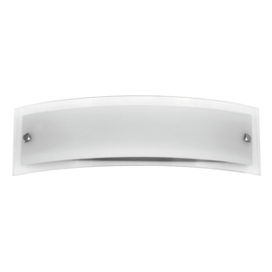Modern stílusú fali lámpa 2 db foglalattal és beépített kapcsolóval. 40 cm széles, 11,5 cm magas, szatin króm színű, fém test és íves, opálfehér üveg lámpabúra szatin króm színű rögzítőcsavarokkal. A lámpatest E14-es foglalatkialakítású, max. 2x 40W teljesítményű energiatakarékos fényforrásokkal is használható.