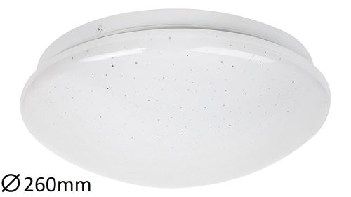 A Lucas mennyezeti lámpa elegáns kiegészítője lehet modern berendezésű nappalinknak vagy hálószobánknak. Aki kedveli a kerek formákat és a csillogó effekt által nyújtott különleges hatást, biztosan szeretni fogja ezt a modellünket. A fémből és műanyagból készült, fehér színű mennyezeti lámpa beépített, energiatakarékos LED fényforrással rendelkezik. Az A energiaosztályba tartozó fényforrás teljesítménye 12 W, fényereje 700 lumen, élettartama pedig mintegy 20 000 óra. 4000 K-es színhőmérsékletének megfelelően természetes fehér fénnyel világítja meg környezetét, tiszta, modern hatást keltve. A 260 mm átmérőjű, kerek lámpa mennyezettől való távolsága 90 mm. Erre a Lucas modellre 5 év garanciát vállalunk.