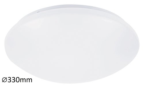 Időtlen megjelenésű mennyezeti lámpa beépített energiatakarékos LED fényforrással. 33 cm átmérőjű, fém ház és fehér színű műanyag lámpabúra. A beépített LED fényforrás A energiaosztályú besorolás és 18W teljesítmény mellett 1170 lumenes fényerőt, valamint 4000 Kelvines, természetes fehér színű fényt biztosít. 5 év garanciával! 5 év garanciával. A lámpatestben a fényforrás nem cserélhető!