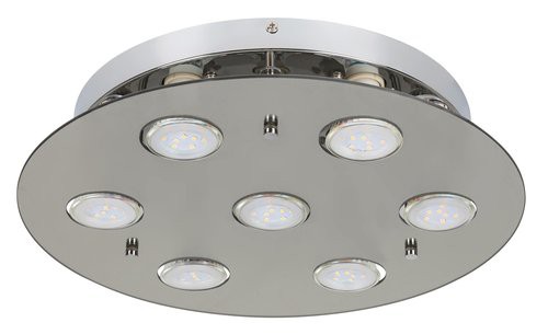 Modern és elegáns: a 7 db cserélhető LED fényforrással szerelt Naomi kerek mennyezeti lámpa gondoskodik a nappali vagy az étkező tökéletes megvilágításáról. A füstszínű üveg és króm kombinációjával készült lámpatestben meleg fehér fényű, energiatakarékos fényforrások kaptak helyet. A nagy méretű lámpa átmérője 380 mm. A LED fényforrások egyenként 5 W energiát fogyasztanak, fényerejük 400 lumen, színhőmérsékletük 3000 K, névleges élettartamuk mintegy 20 000 óra. A GU10-es típusú foglalatokba 7 db, egyenként maximum 15 W teljesítményű LED fényforrás helyezhető be. A mennyezeti lámpa nettó súlya 1,8 kg.