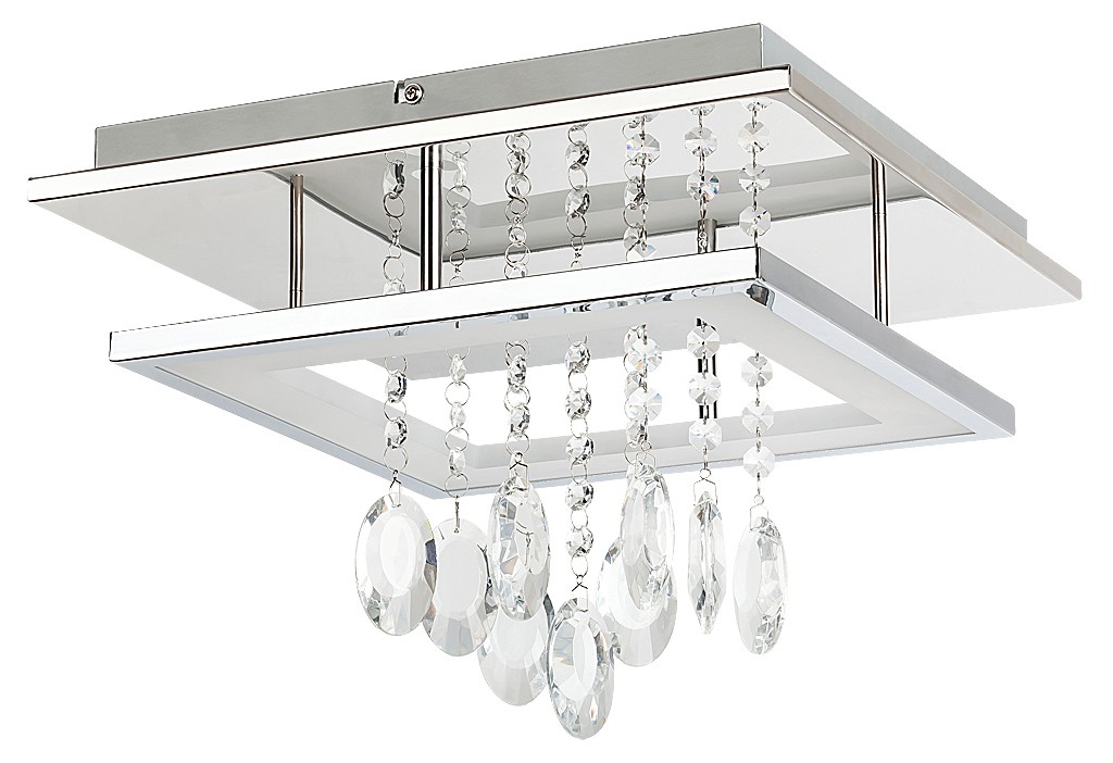 Modern megjelenésű mennyezeti lámpa beépített energiatakarékos LED fényforrással. 35 cm széles, króm színű fém lámpatest és üvegkristály díszítésű, akril lámpabúra. A lámpatestbe beépített LED fényforrás A+ energiaosztályú besorolás és 24W teljesítmény mellett kimagasló, 2000 lumenes fényerőt, valamint 4000 Kelvines, természetes fehér színű fényt biztosít. 5 év garanciával. 5 év garanciával! 5 év garanciával. A lámpatestben a fényforrás nem cserélhető!