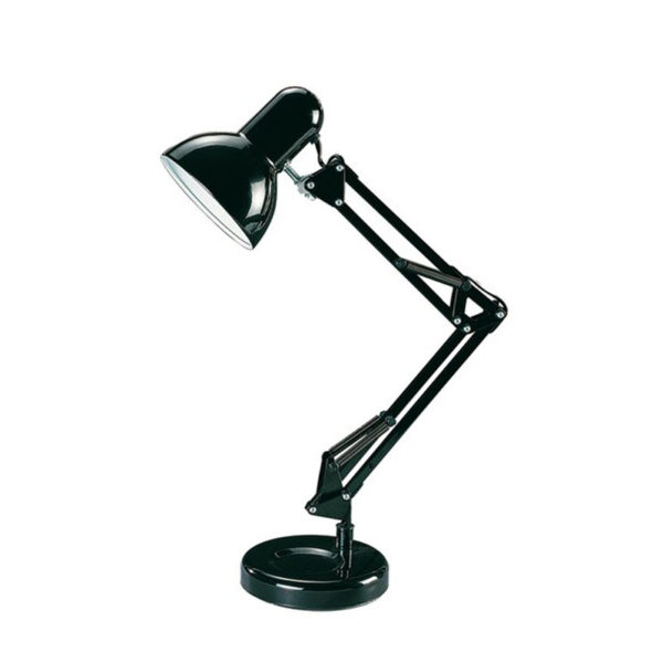 Megfelelő asztali megvilágítást biztosító asztali lámpa állítható karral és fejjel, 49 cm-es magassággal, fekete színben. Fém alapanyag, tartós kivitel, IP20-as védettség. A lámpatest E27-es foglalatú, maximum 60W teljesítményű halogén vagy energiatakarékos fényforrással használható.